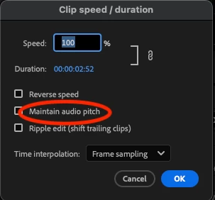 When using "maintain audio pitch" with "Clip Speed/Duration" the resulting audio is unusable