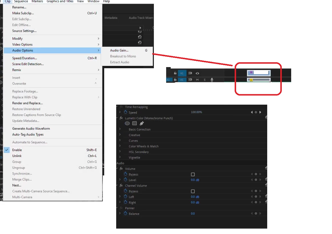 I selected few clips and went to audio options and audio gain and performed a added/reduced DBs of the clips.