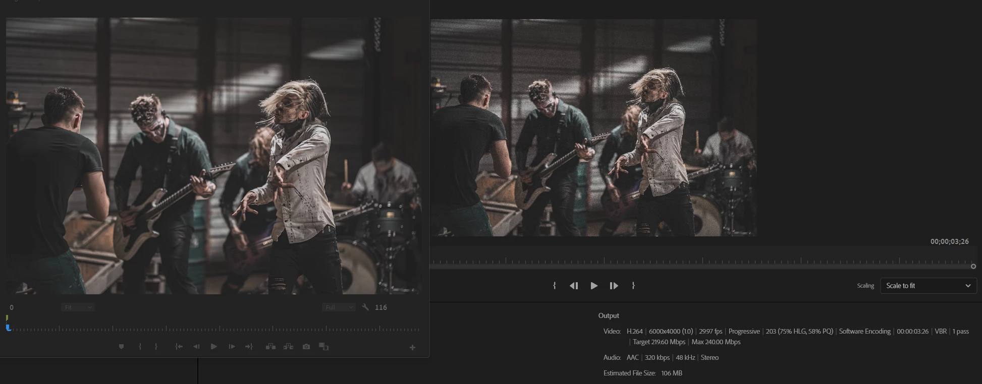 Here is a side-by-side of my clean footage in the preview, export settings, and what the renderer is doing to the footage. It compresses it and adds odd noise/grain, and I don't know how to fix this. It looks fine in the preview, but it renders all grainy.