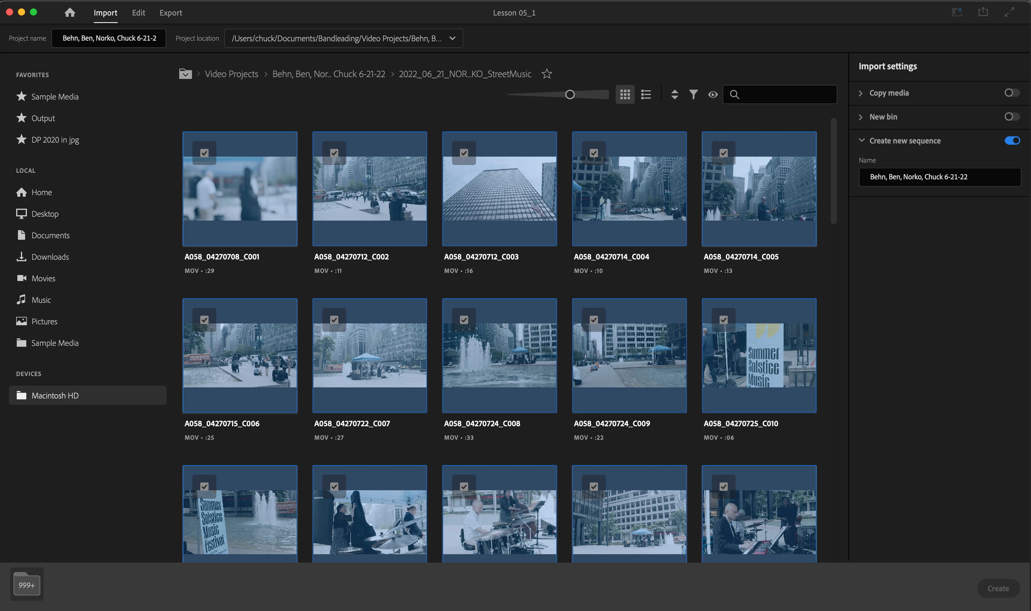 I'm trying to create a new Premiere Pro project, which apparently begins with importing media. I have what I understand to be compatible media selected, but the "create" button is grayed-out, prohibiting me from going further.