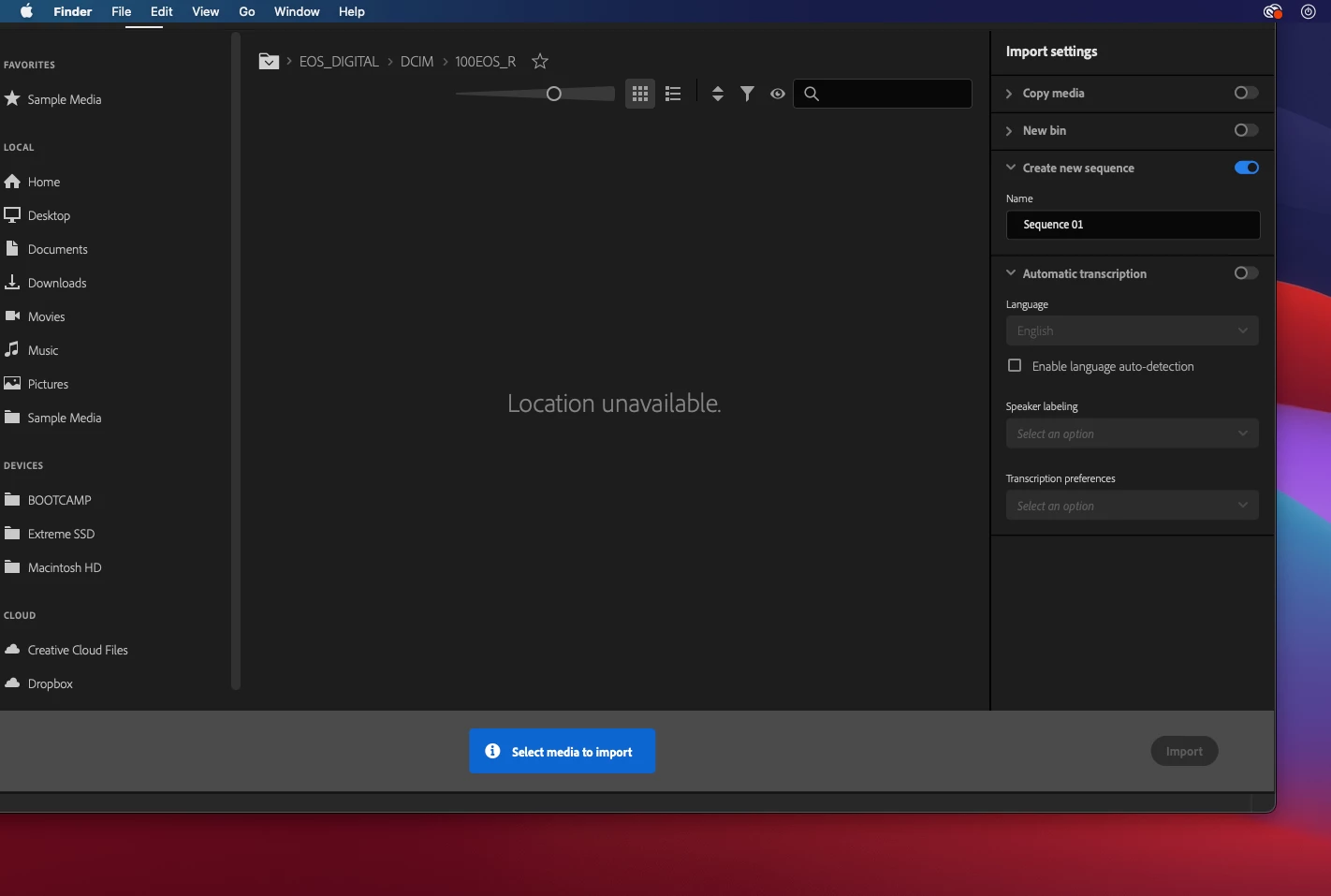 Window frame out of reach, Mac OS Big Sur, Adobe Premiere Pro Beta 23.6.0