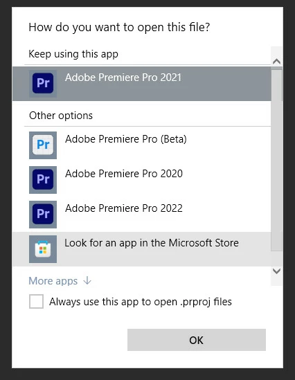 Windows Default app selector is soo Broken for Premiere Pro 2023