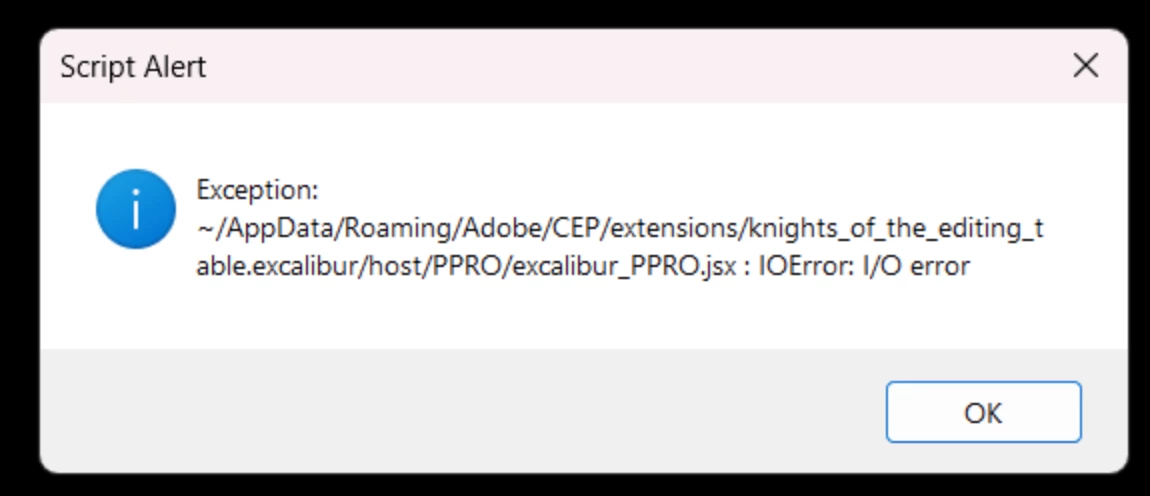 Windows, Premiere 25.4, "IOError: I/O error" when loading extensions