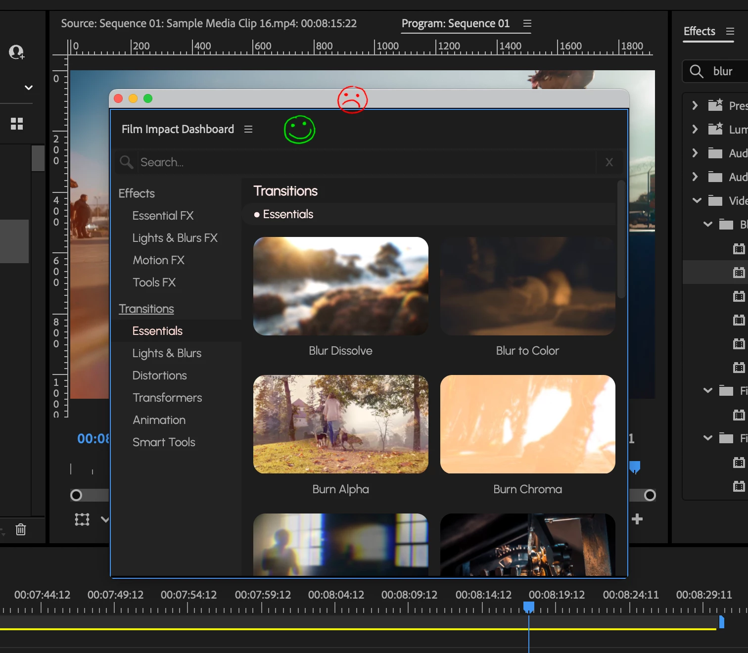 First, go to the Window Menu, Extensions, and select Film Impact. Now you have the full F-I panel.