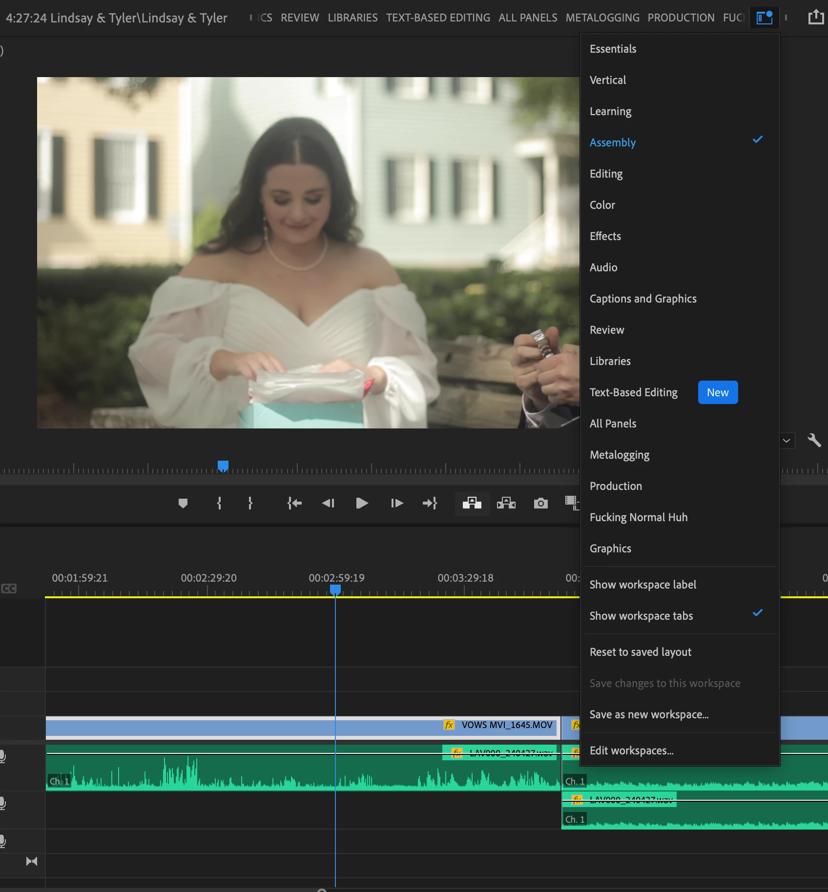 Avid (Premiere) user for the last decade, I was literally editing an hour ago, left the house, came back and my layout had changed. The top bar with the workspace tabs is completely different, and looks like this now. I don't have a before for reference, but the work tabs (Assembly, Editing, Color, Effect, Audio, Captions) were all accessible at all times at the top of my screen, now I have to click the highlighted blue menu. It's just annoying. Anyone else experiencing this? OR did I just hit a button and screw something up myself?