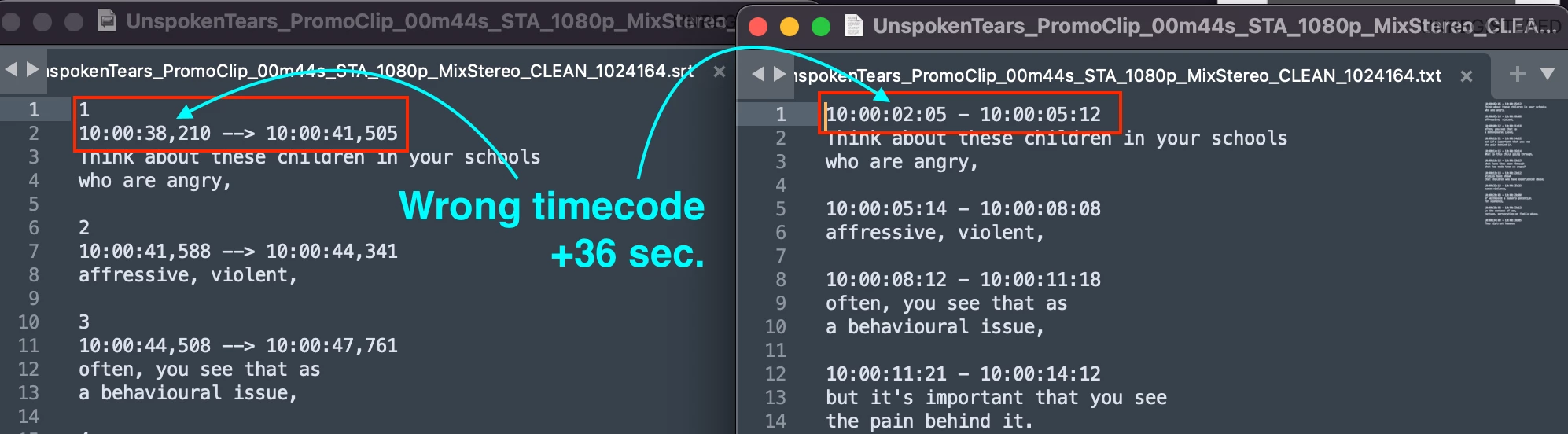 Wrong timecodes when exporting SRT files (+36 sec.)