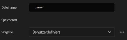 Auch der Dateiname lässt sich nicht ändern. Einstellungen bereits einmal zurückgesetzt. In einem neuem Projekt funktioniert es.