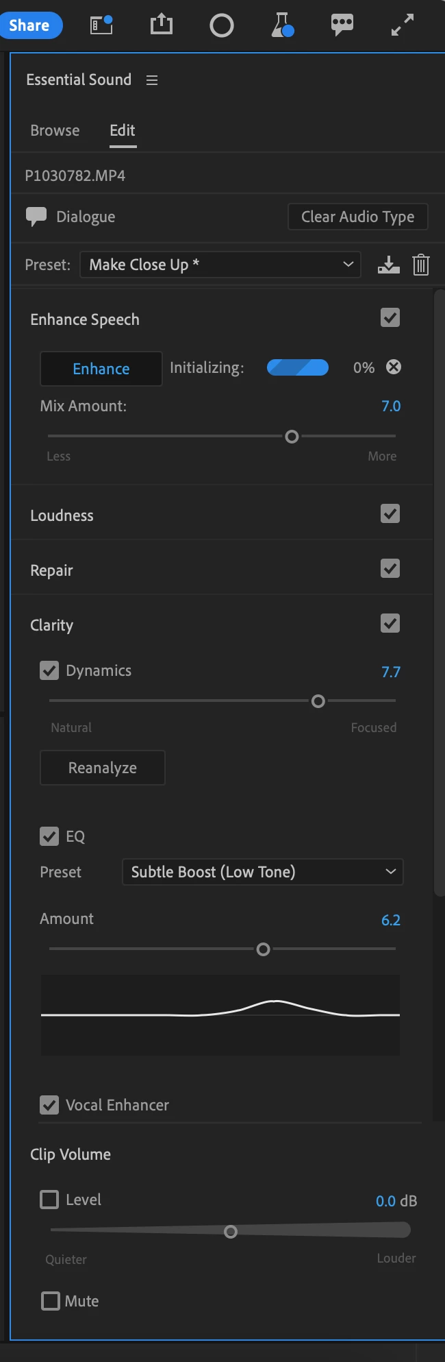 I selected all my audio clips and then labeled them dialouge, then clicked a preset and then enhance. I am connected to the internet (not sure if that matters). Any idea why its not working?