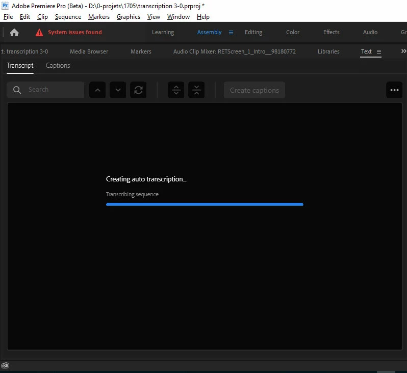 We used recently the auto transcription on last days with success but today it feezes at the end of the process. I joined a screen capture which shows where it stops. It is on that screen since almost en hour. The video is about 10 minutes long.