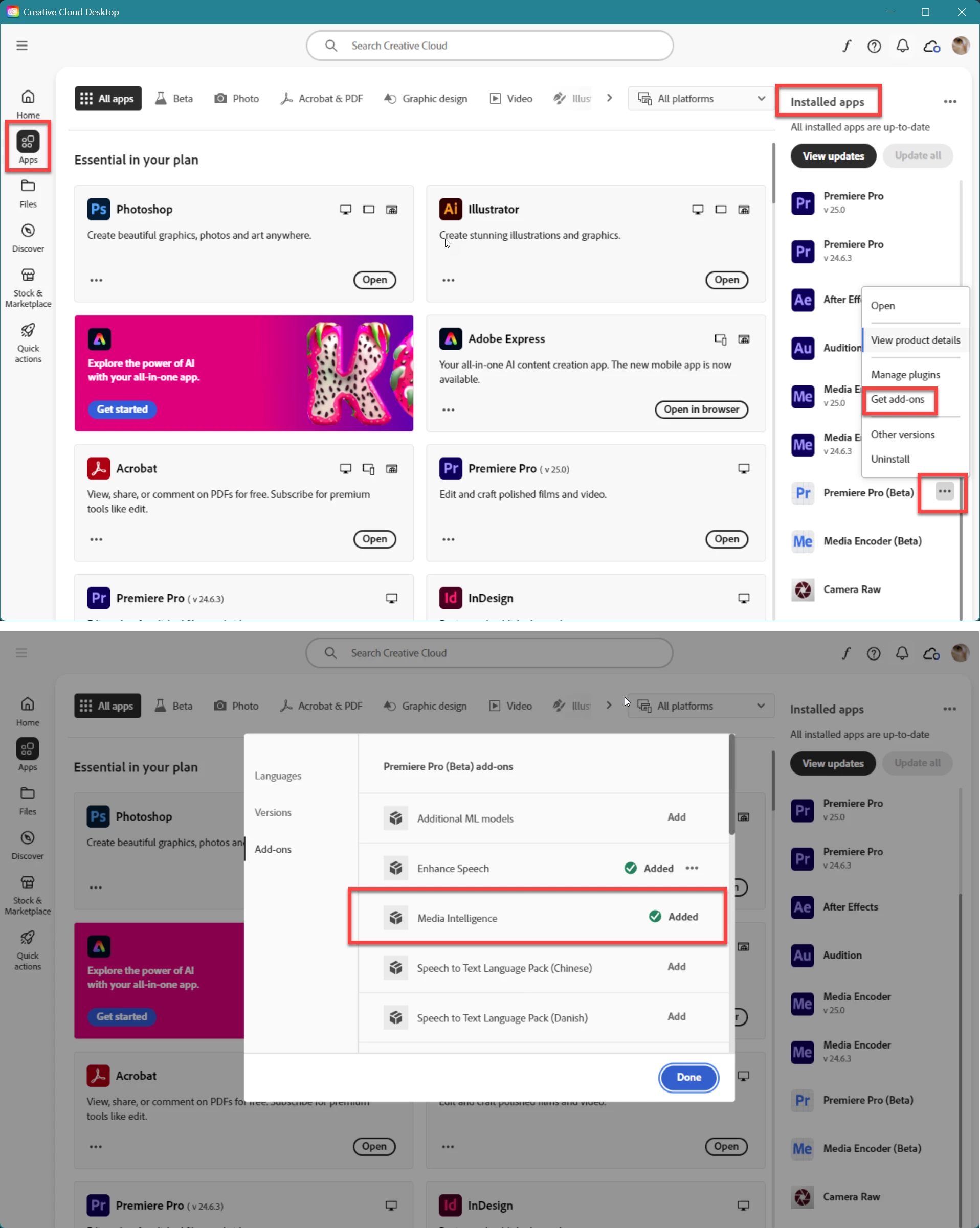 I have been trying to update Premeire Pro (Beta) for many days now, everytime it looks like its finished but then I go uo to the cloud symbol and its still loading with the message "Adding Media Intelligence" It loads all the way and then disapears and Premire Pro (Beta) shows up in available updates again.