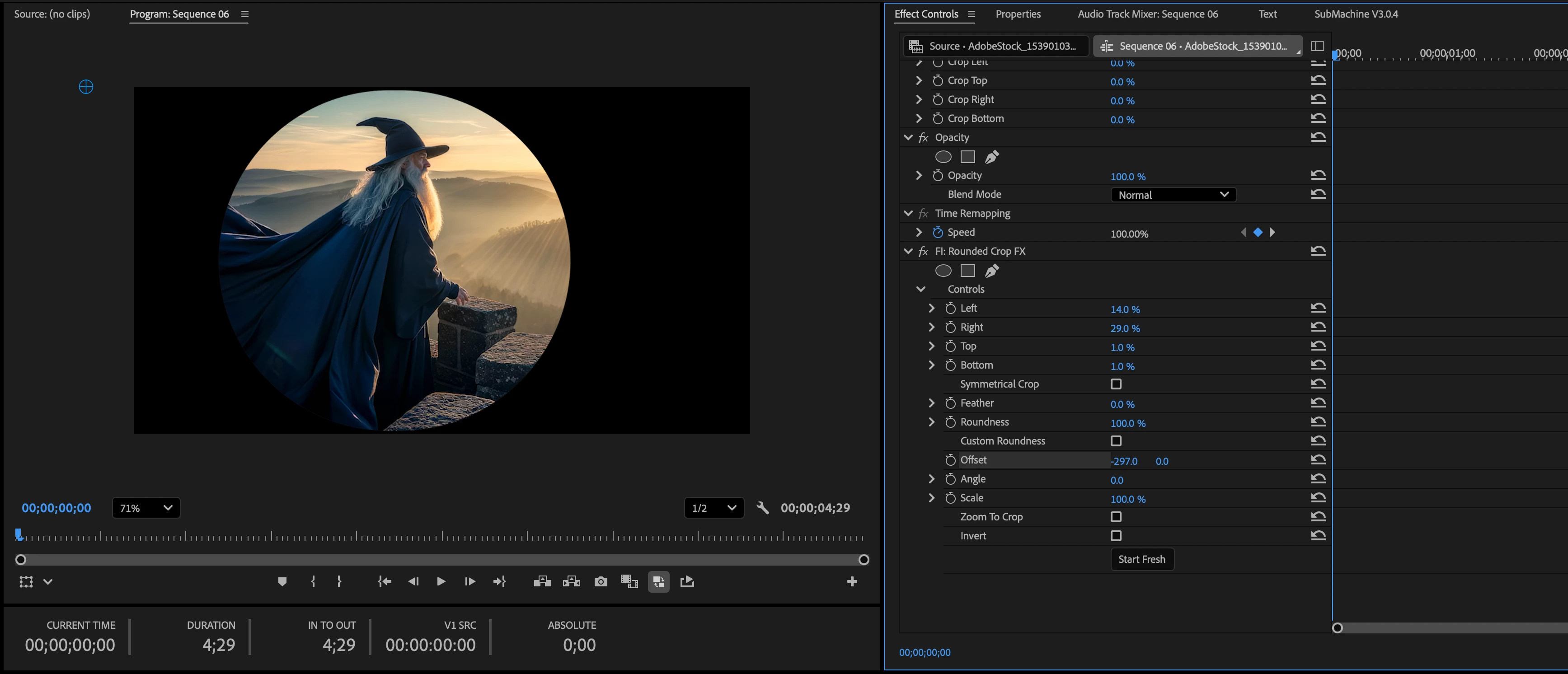 Circle Crop Premiere pro beta 25.2