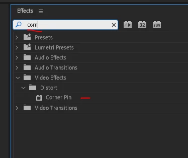 Corner Pin is not available in the effect palette. I am working off a template that has several corner pins created for monitor replacements. I cannot use the program like this...to be fair, it isn't available on the Rosetta version either.
