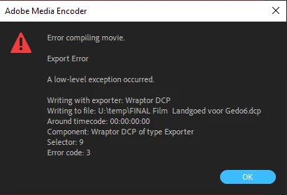 When we try to export FINAL Film Landgoed voor Gedo we can export to H264 or MXF but not to Wraptor DCP.