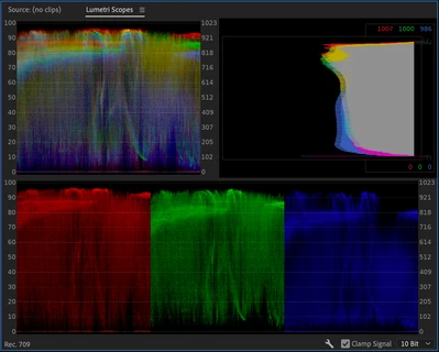(Image: Scopes of the clip in Rec.709 Color space show that most of the highlight details are clipped)