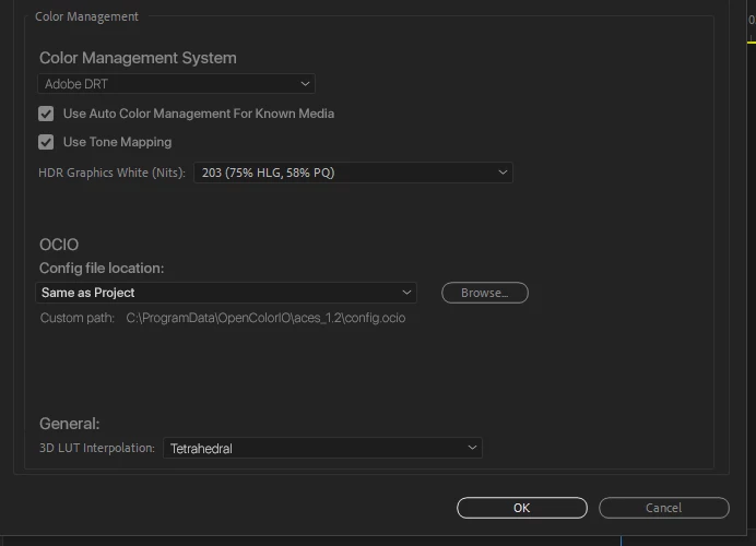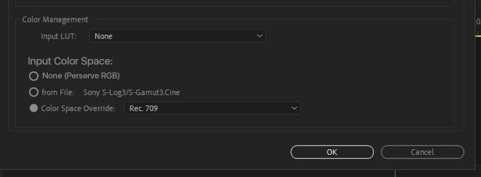 This is not enough to serve as robust color managing pipeline which is a shame for the potential Premiere has going this direction. If we can get a pleasing true display rendering transform including the abilty to have an actual Working Color Space before the Output Color Space we can actually get work done. For example copying grades from REDWideGamut/Log3G10 to Sony SLog3/SGamut3.cine would perceptually look similar aside from sensor differences because the desicions were working color space based.