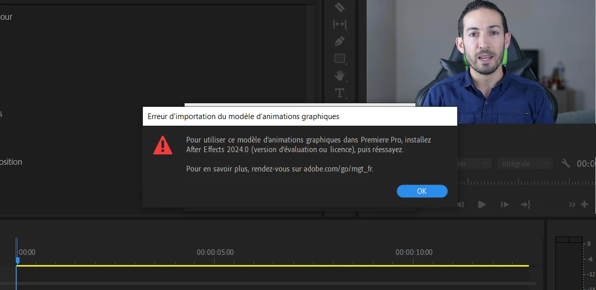 je recois ce message derreur alors que je dispose de After effect 2024 sous licence