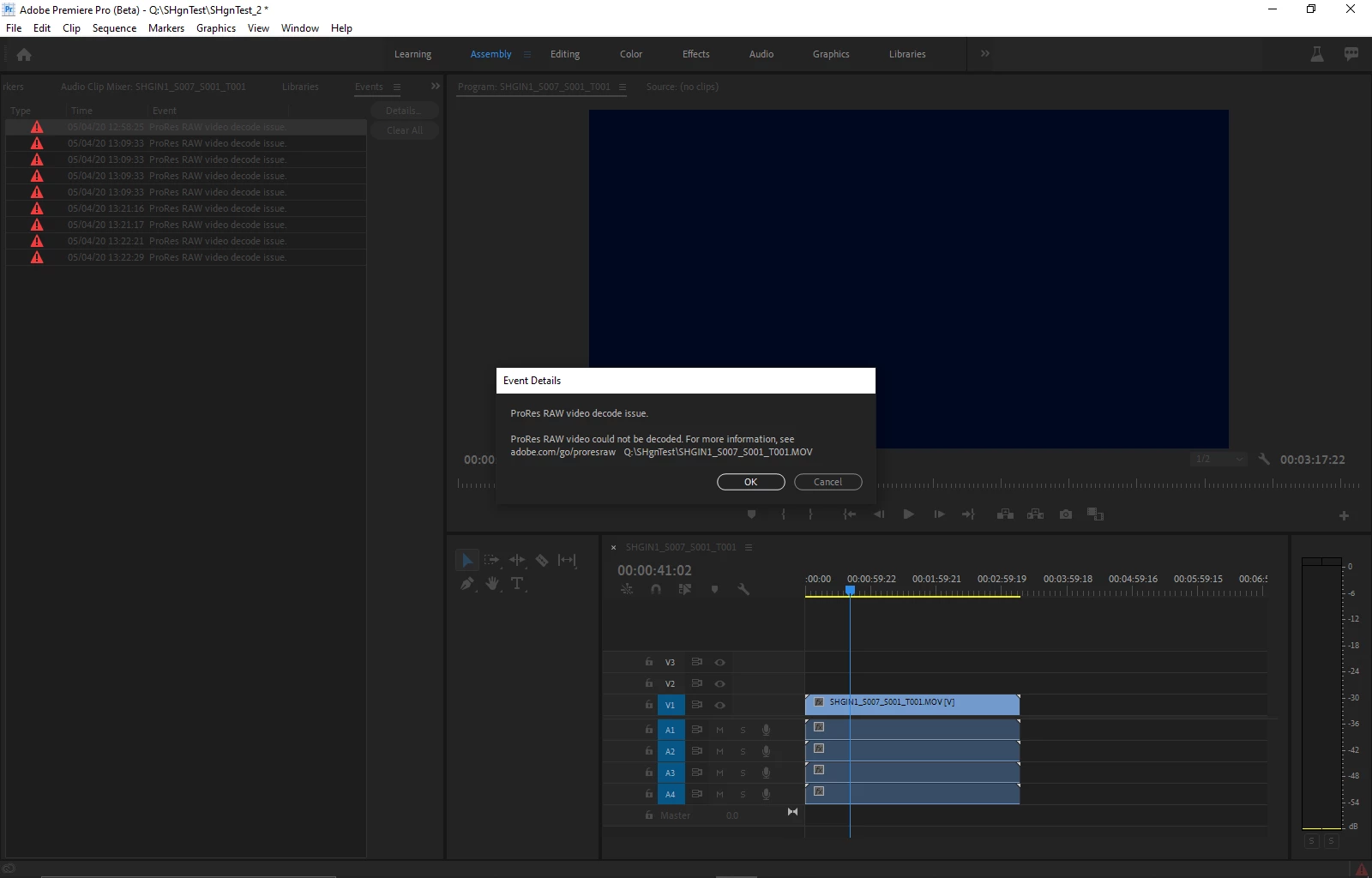 Error: ProRes RAW video decode issue