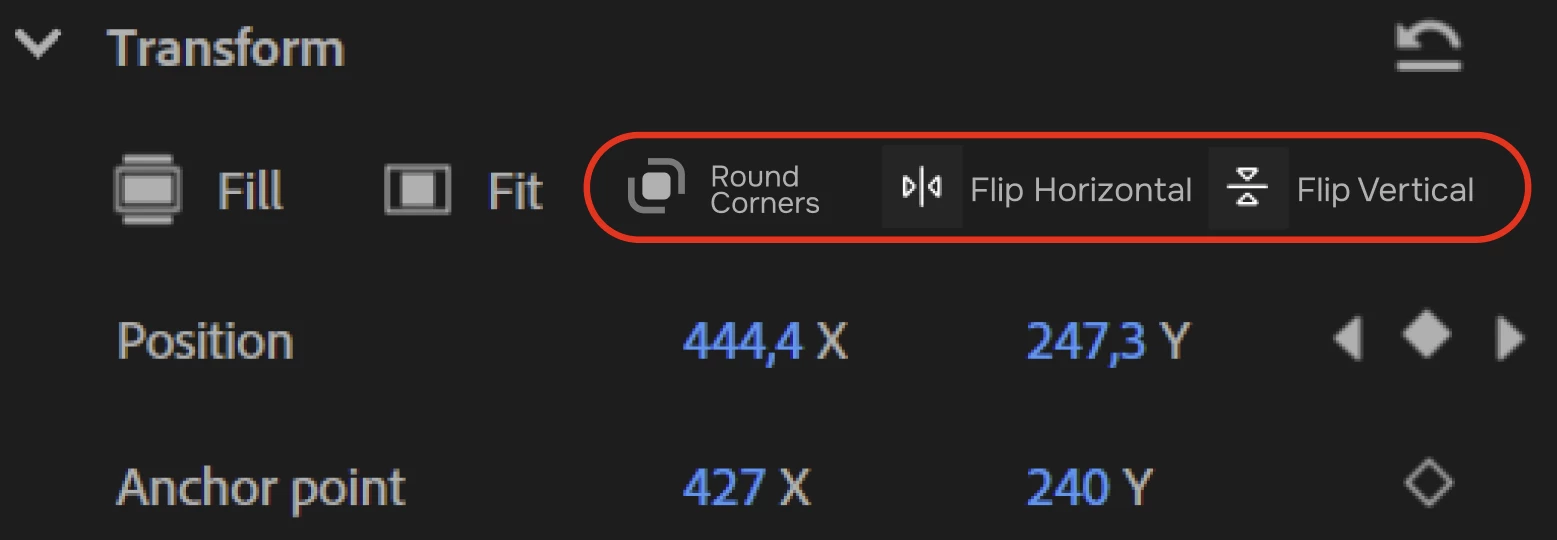 I really liked the new transform panel in Premiere, but I missed it and I think it would be great to have 2 more icons next to Fit. Furthermore, it would be great to have the option of rounded corners in the crop.