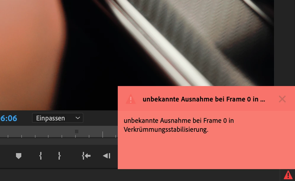 Hatte jemand von euch schonmal diese Fehlermeldung? '' Unbekannte Ausnahme bei Frame 0 in Verkrümmungsstabilisierung'' Ich finde dazu online garnichts und bin langsam echt ratlos....