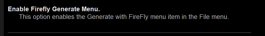 Firefly Generate Menu Enabled - Whats this interesting change...