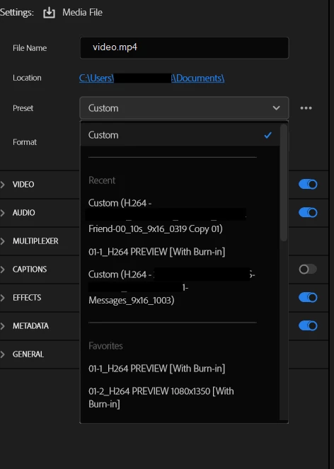 I can see exactly 2 of my favorited presets and I already need to scroll. Who even cares about Recent? They will just end up being repeats of what you've favorited already if you have a workflow with fixed deliverable types...