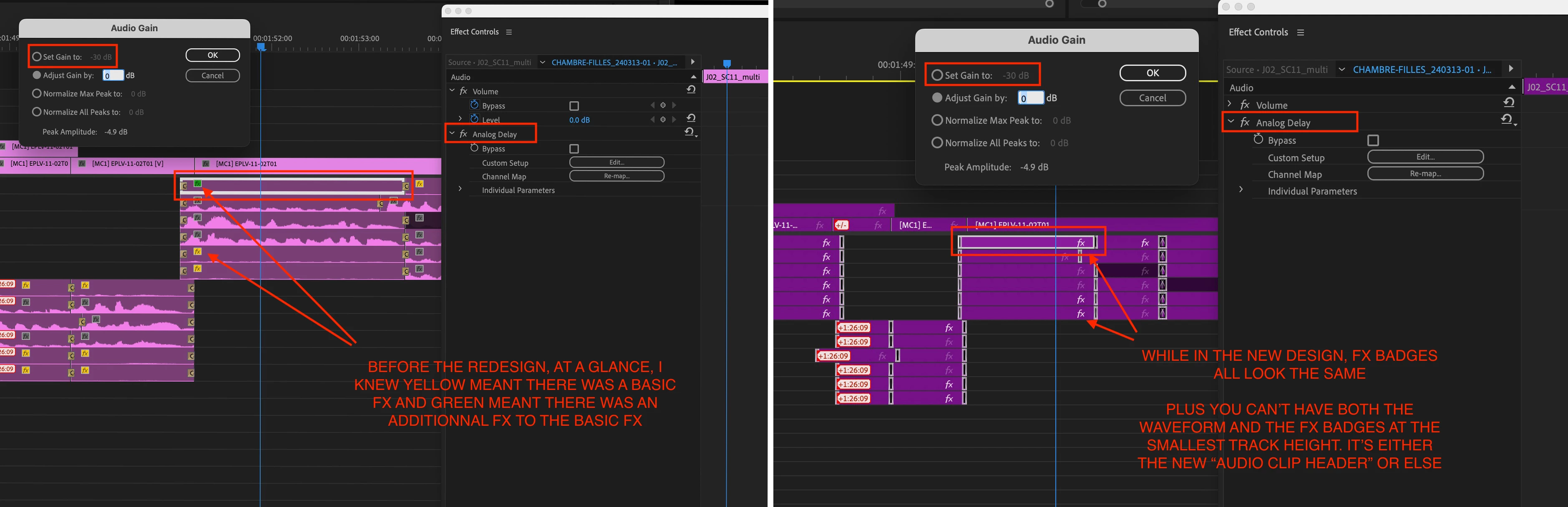FX badge color code missing in new clip redesign