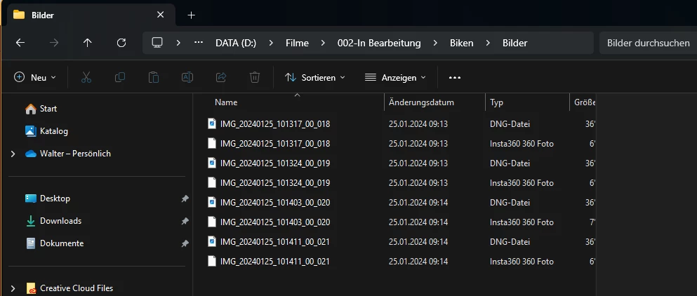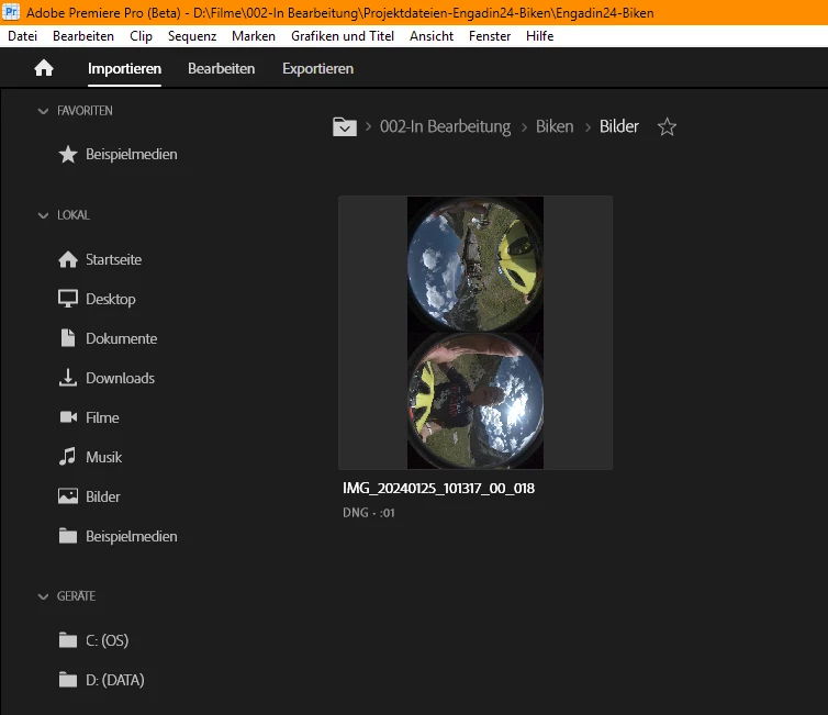 When I start to import media files from a folder where I have media files with the ending .dng and .insp (foto files from an Insta 360° camera) i get only the first file displayed in the import screen of Premiere Pro.