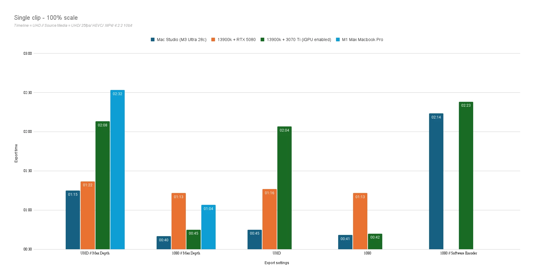I personally would prefer to stick with a Windows based system. But as much as export time doesn't always matter, this is an example of where when scaled up from the 1min test to the 30min timeline, it actually has a big impact.