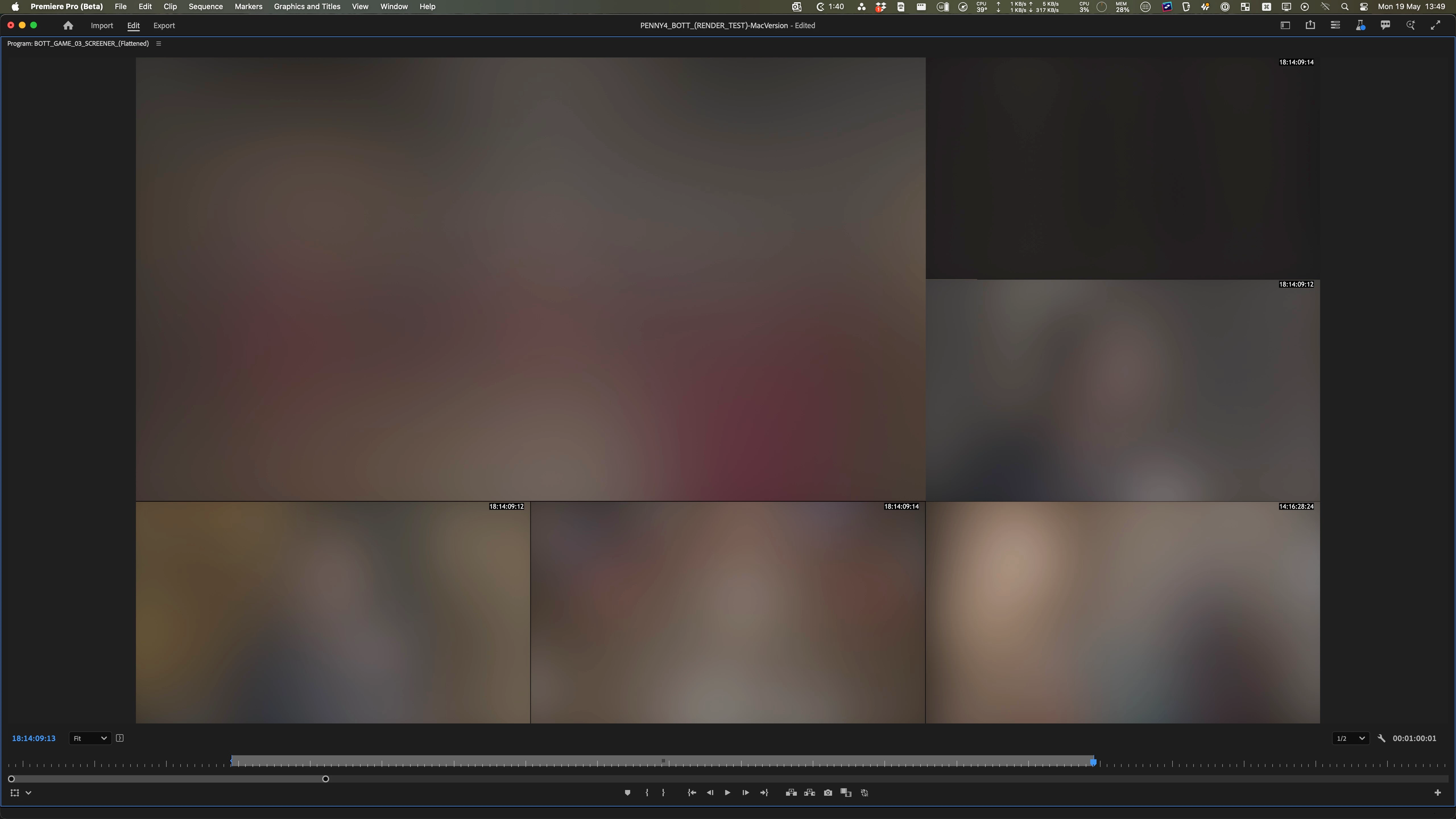 The main test was a 1min segment of a UHD timeline, with 6x UHD video streams. These were all scaled down to make a split screen.