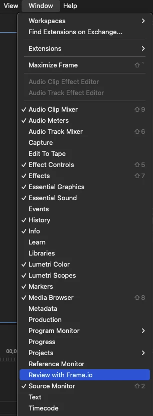 In Beta 22.5.0 build 8, under the Window Menu, choose Review with Frame.io.