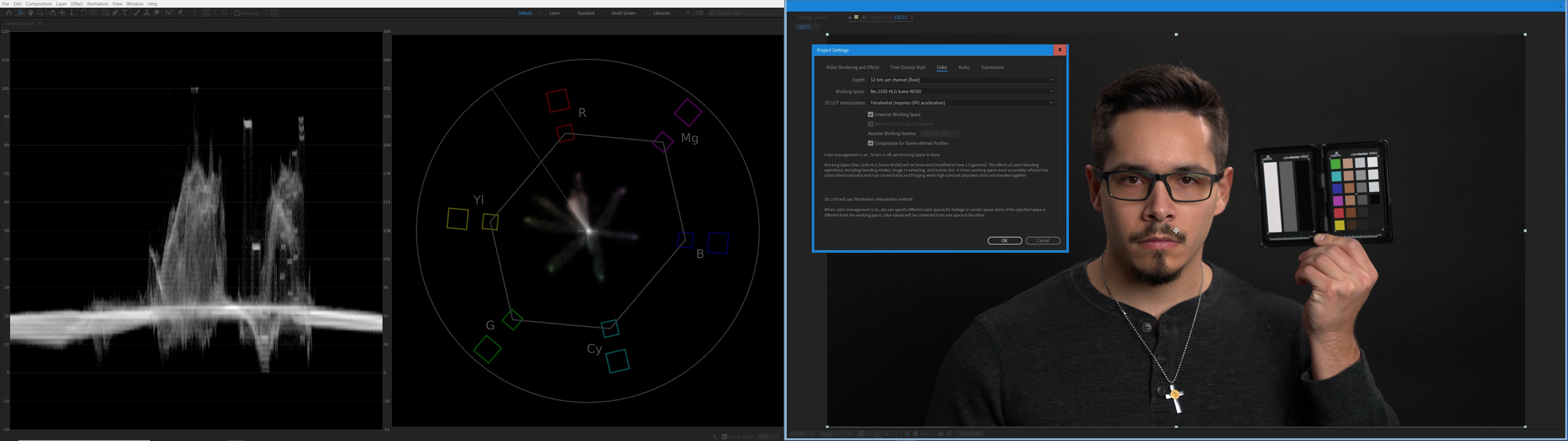 UHD 24p, 32 bits per channel, linearize working space, compensate for scene referred profiles.