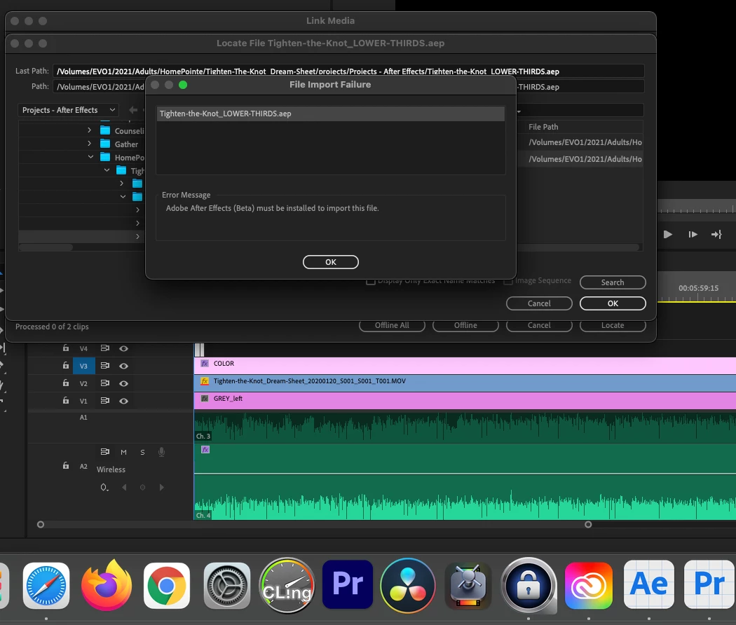 Premire Beta for M1 and AE Beta for M1 are both installed, but Premiere is not allowing for dynamic link import of AE projects from AE Beta projects.