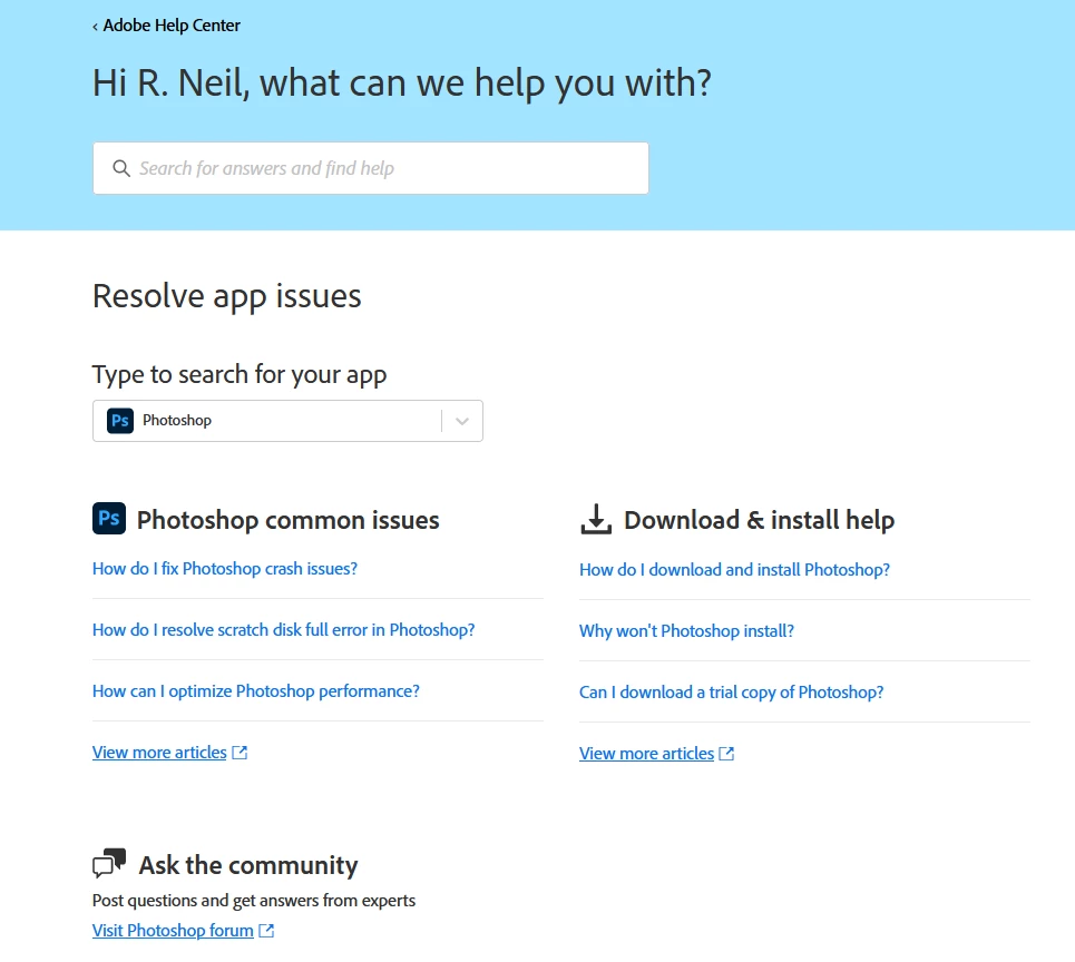 Clicked on the Apps box ... went to ... handling questions on Photoshop!