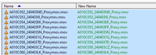 I then closed the project; manually renamed all the Proxy Files and reopened the project again.