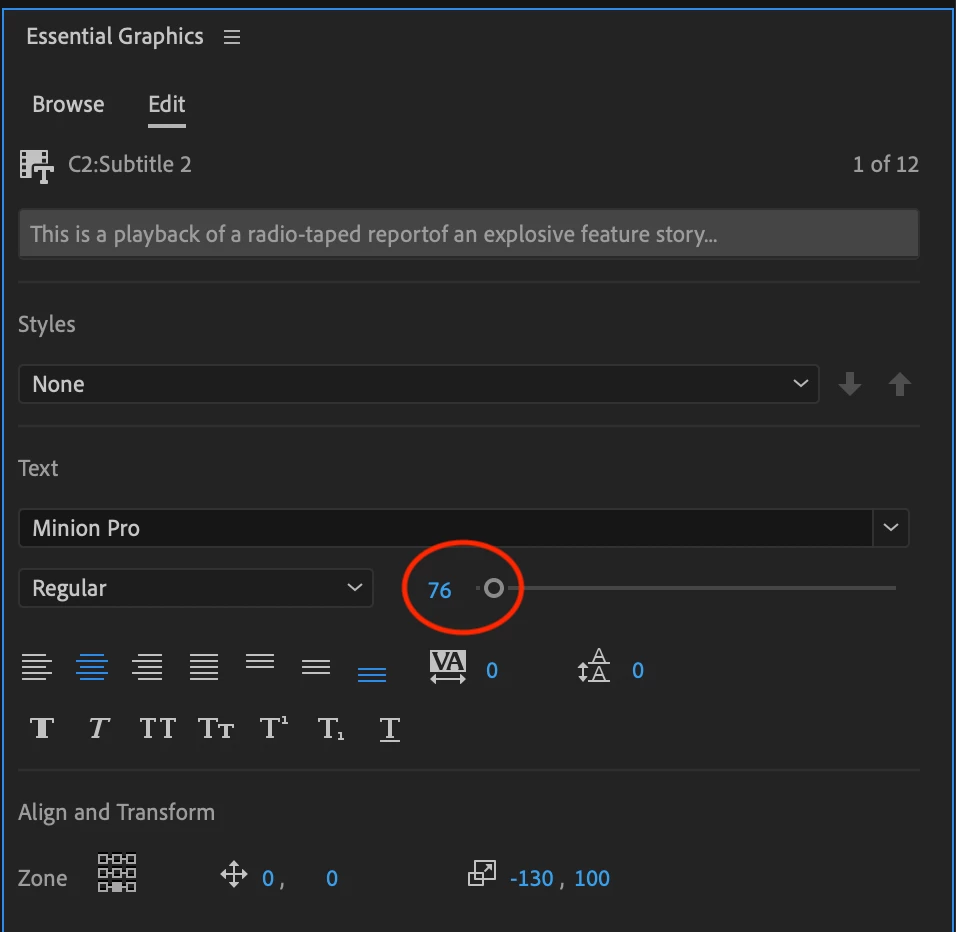 Calrification: resizing the bounding box will not resize text within, it will only affect how it wraps.