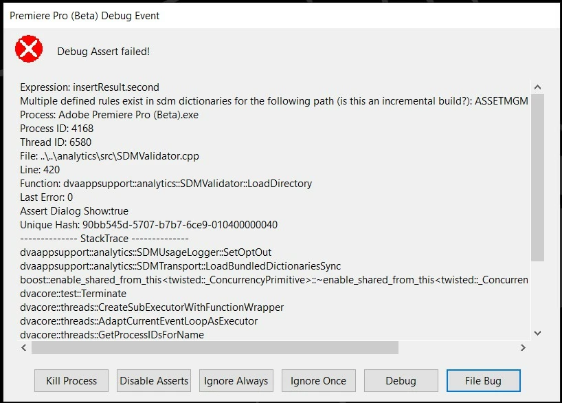 Strange error window at the opening of Premiere Pro beta
