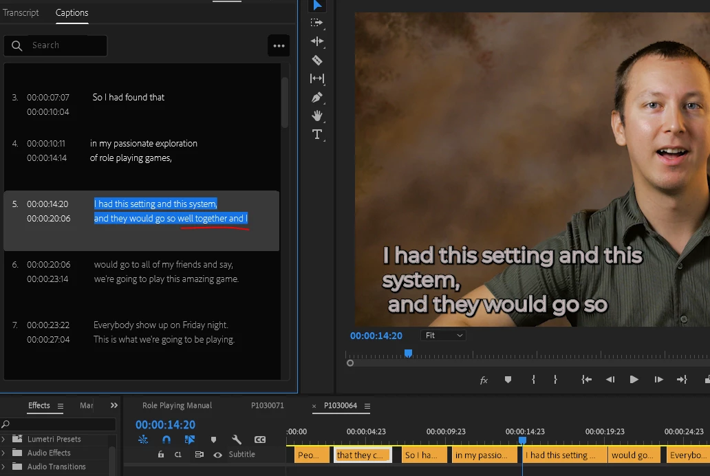 When the auto-transcription service completes its thing and I have it make subtitles/captions, it adds an auto-line break somewhere between 25 and 40 characters in. And this is not the 'wrap' for the text box, it ignores the text box, and happens even if it's already wrapped. Making a short middle line. Leaving out the last couple words of the text.