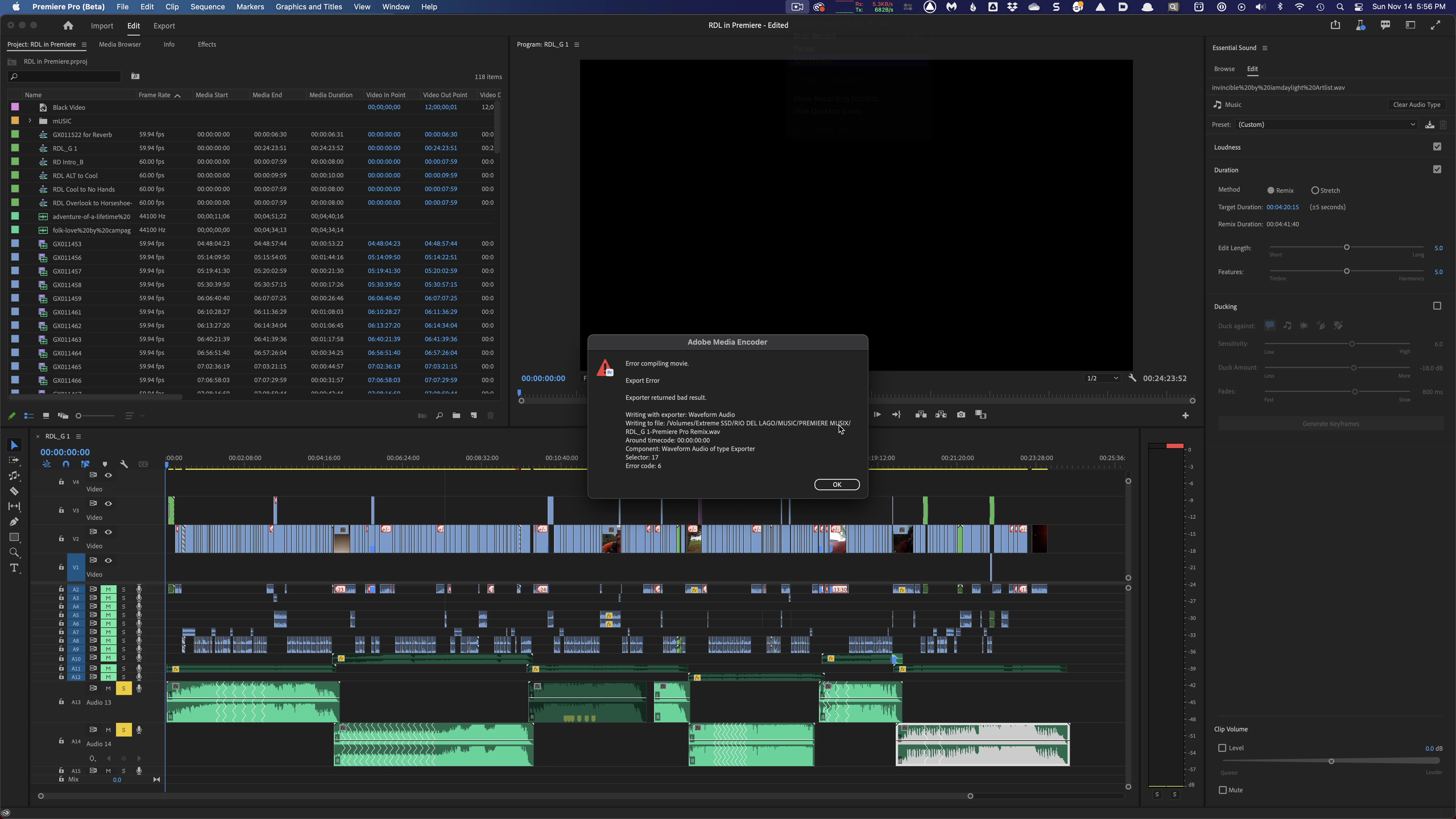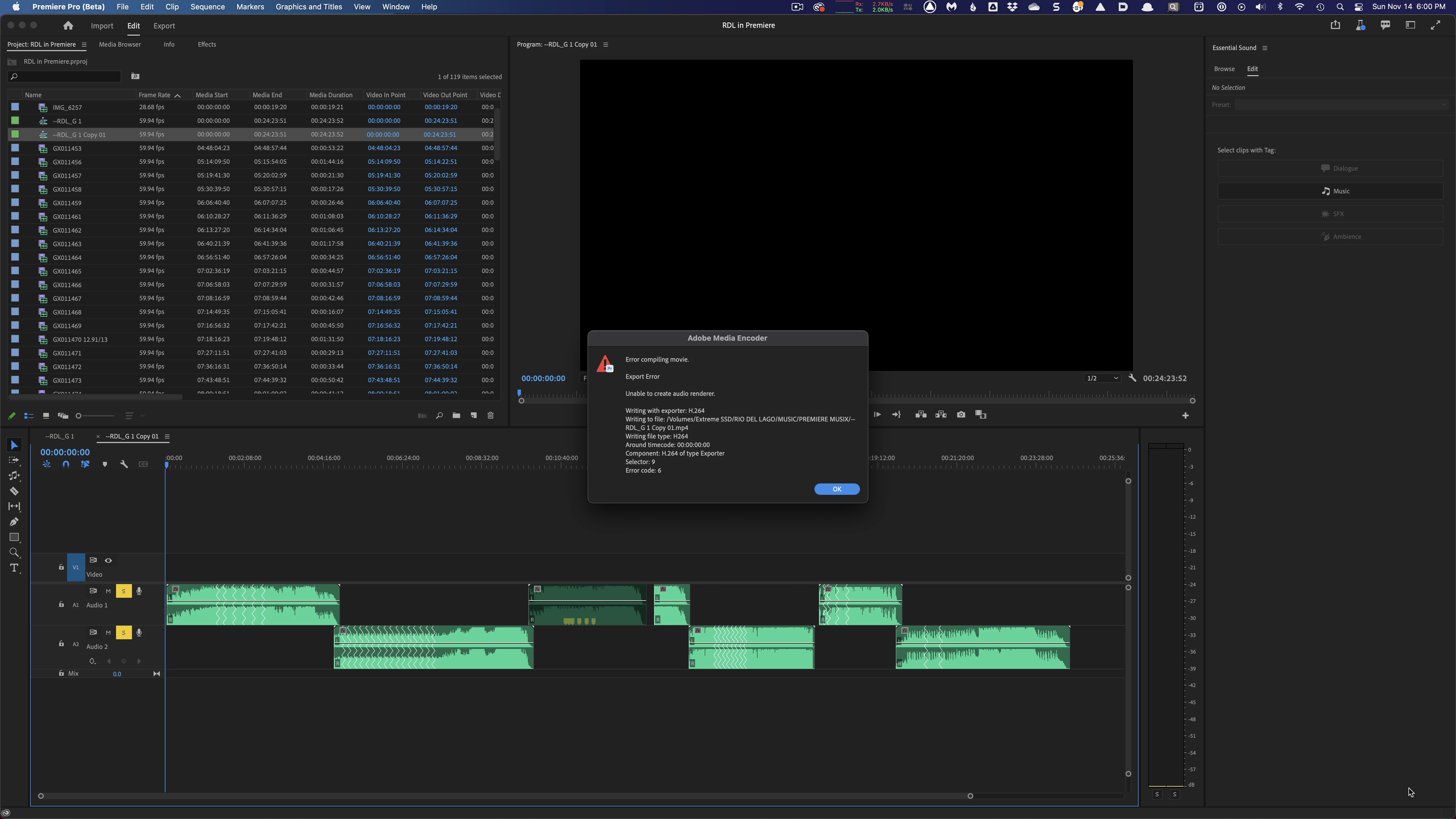 Result: Errors, screenshots attached. I tried AIFF, WAV, QuickTime, H.264