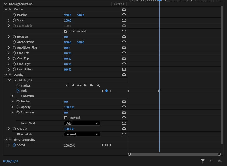 I'm currently trying to manually mask using the pen mask tool, a small portion of an image so that it would gradually fill into the frame. But no matter what keyframes I put it doesn't seem to change. Any fixes for this?