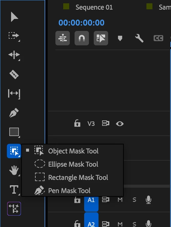 If you click and hold on the Object Mask Tool, you will see the other Masking Tools to choose from. I hope that helps.