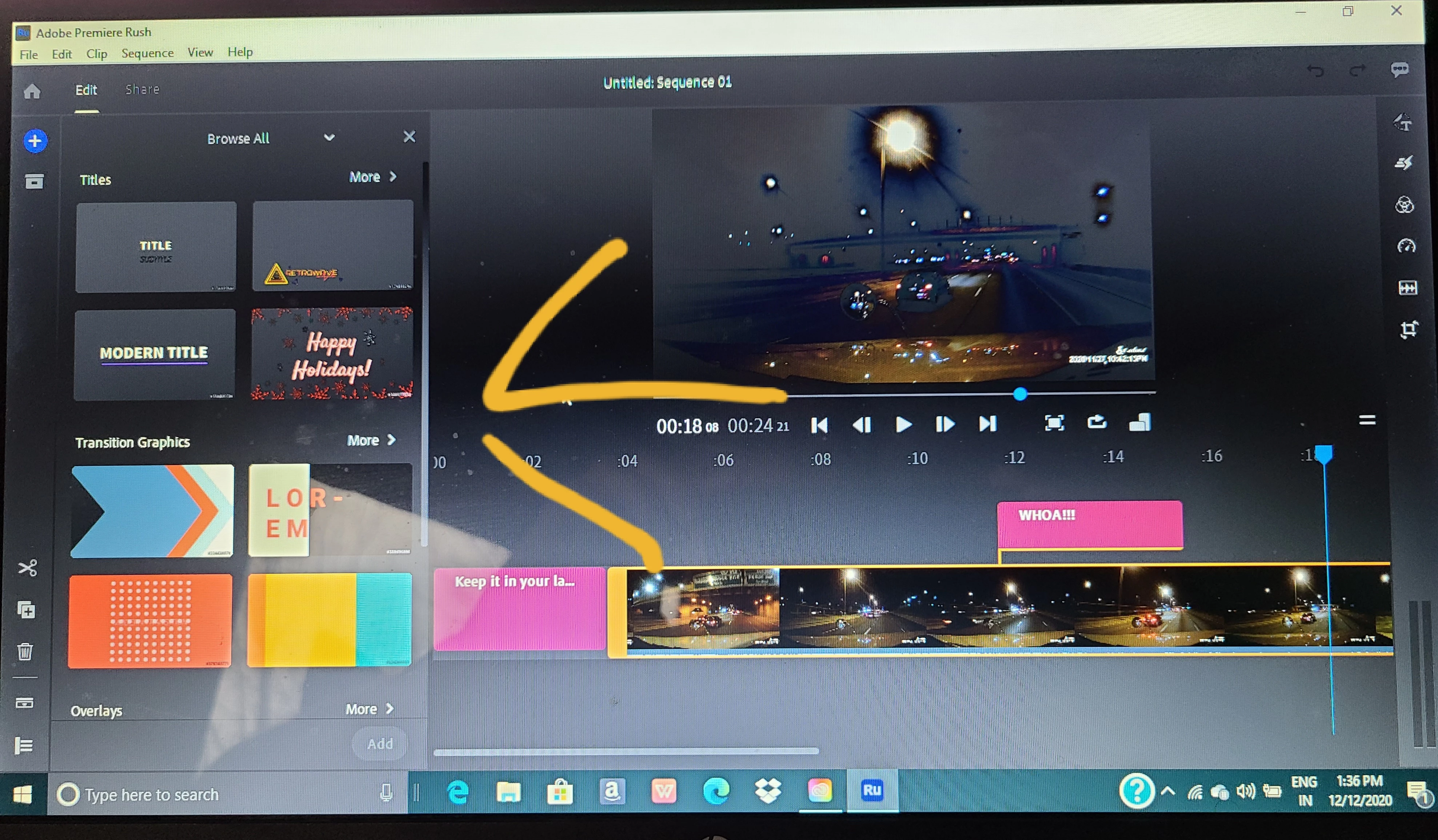 Tip: If you do not see the title, make sure the playhead is parked on the title clip.