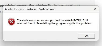 Adobe Premium Rush not Opening on PC - System Error