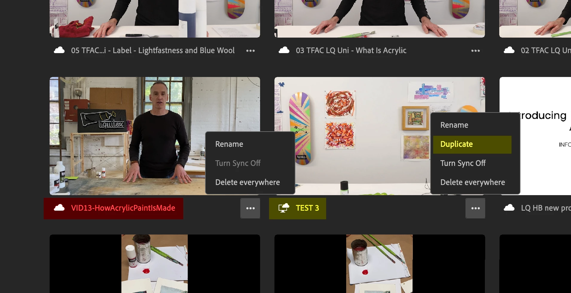 Adobe Rush - Cannot duplicate project in panel