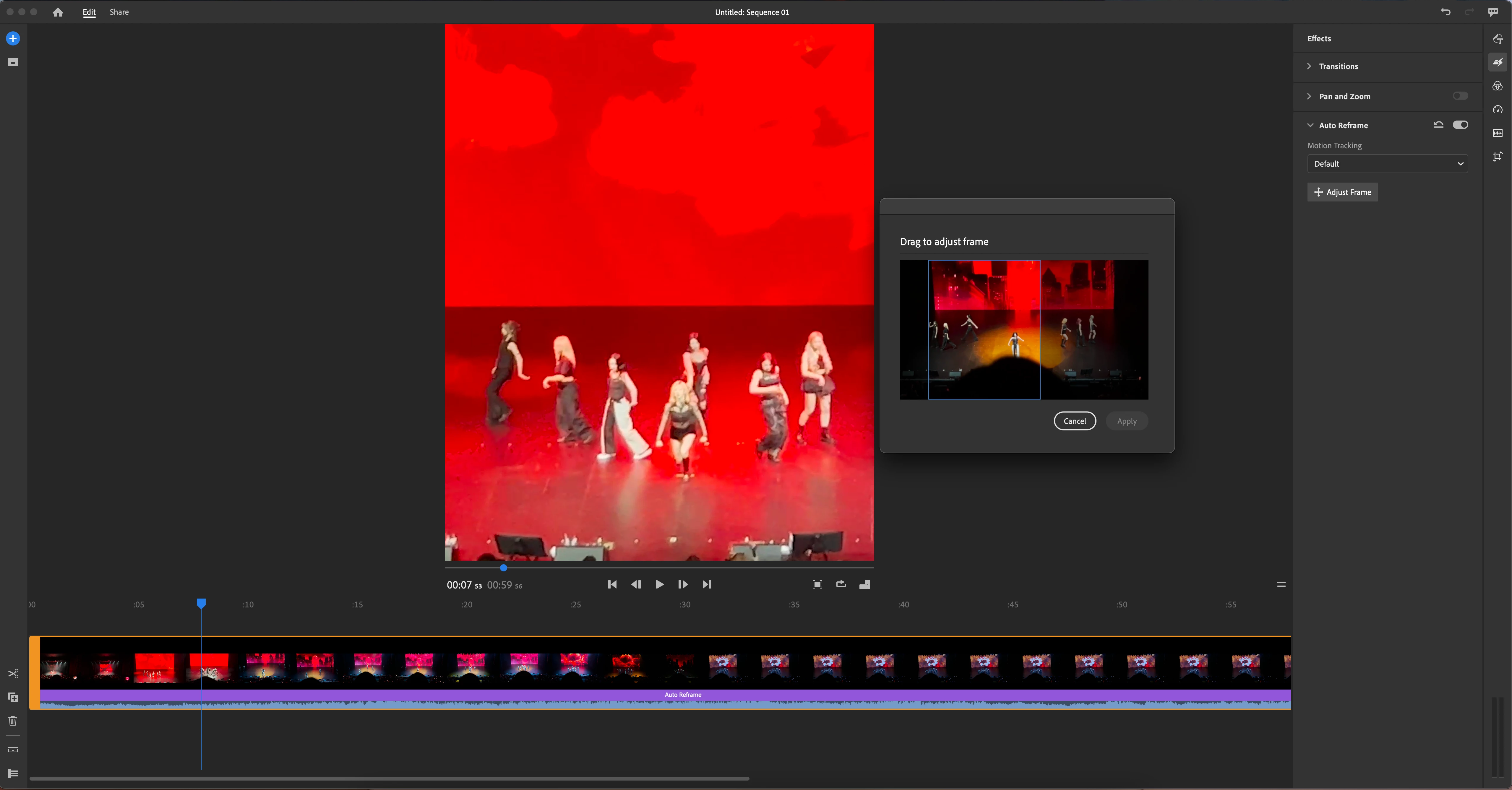 I've noticed that when using the auto reframe feature it often shows the wrong frame when you select "adjust frame" as seen in the screenshot. It happens quite frequently and restarting the app does not fix the issue. The provided screenshot is from the Desktop version but the issue happens on my iPad as well.