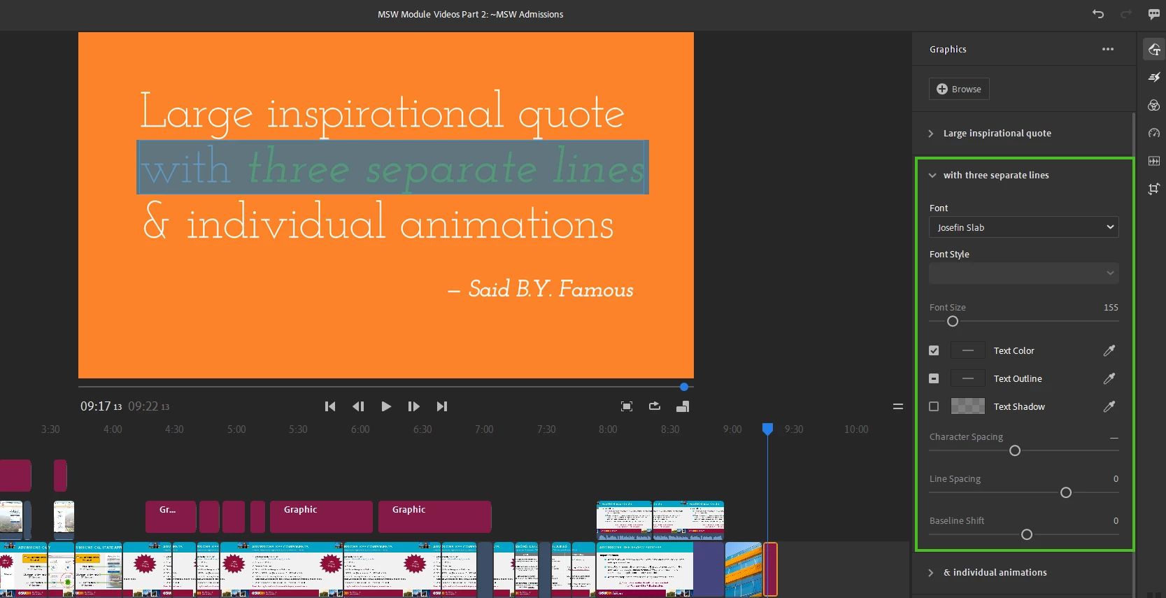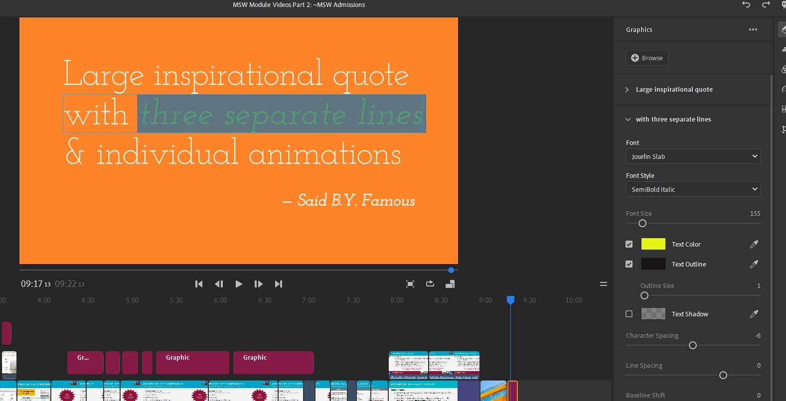 First, select the mogrt from the Graphic panel: