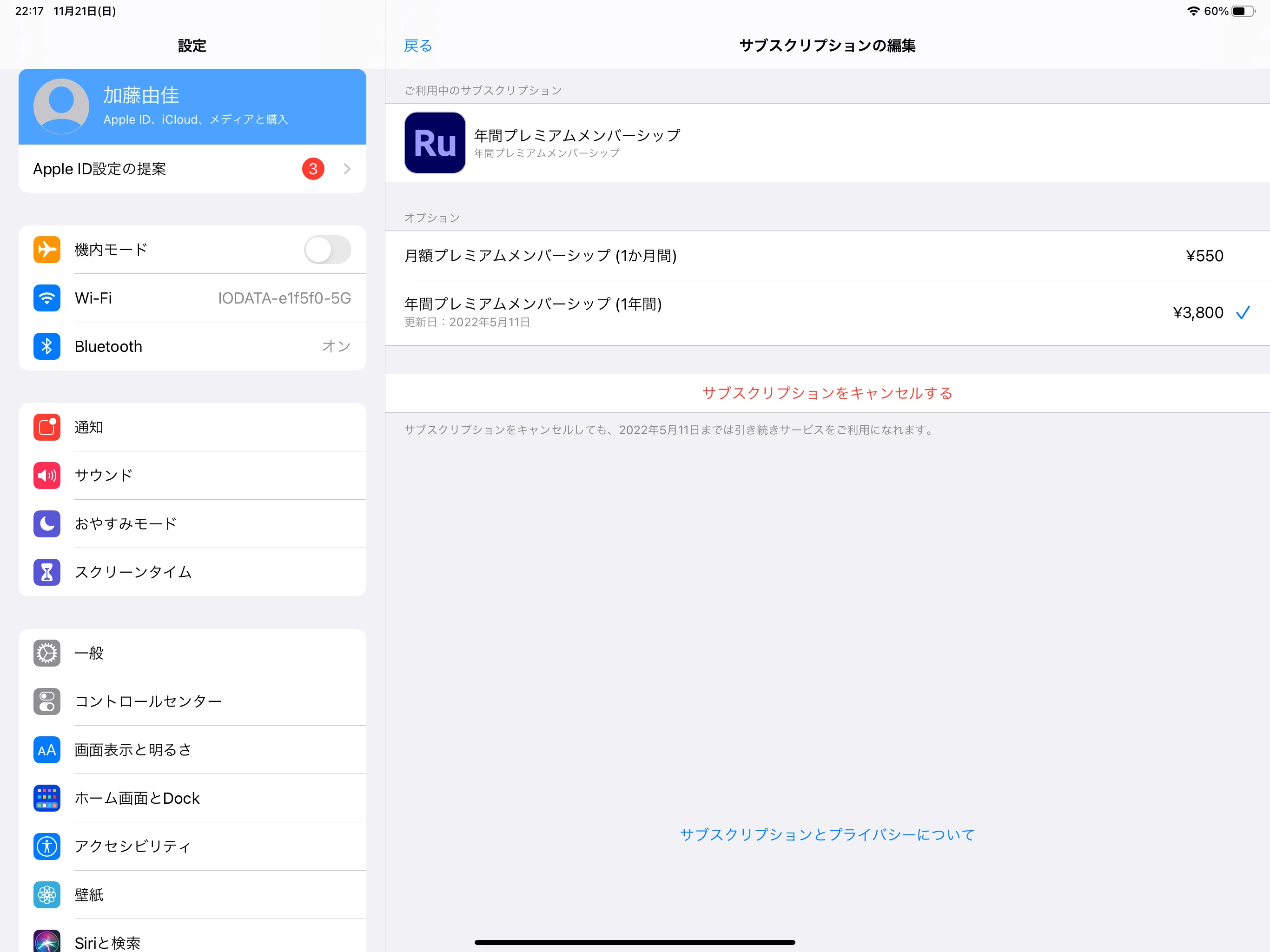 iPad Pro 第4世代で使用しており、apple IDとアドビのメールアドレスは同じです。
