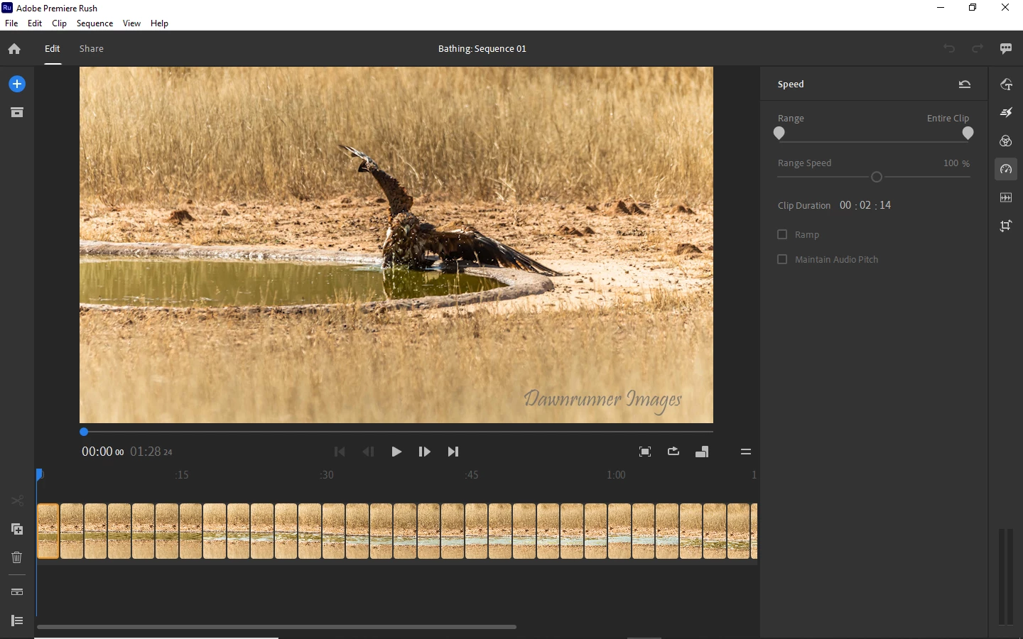 I want to speed up my video consisting of 36 stills but the editing panel stays grey (inoperative). I am sure it is something very simple as I am new to Rush. Please assist.