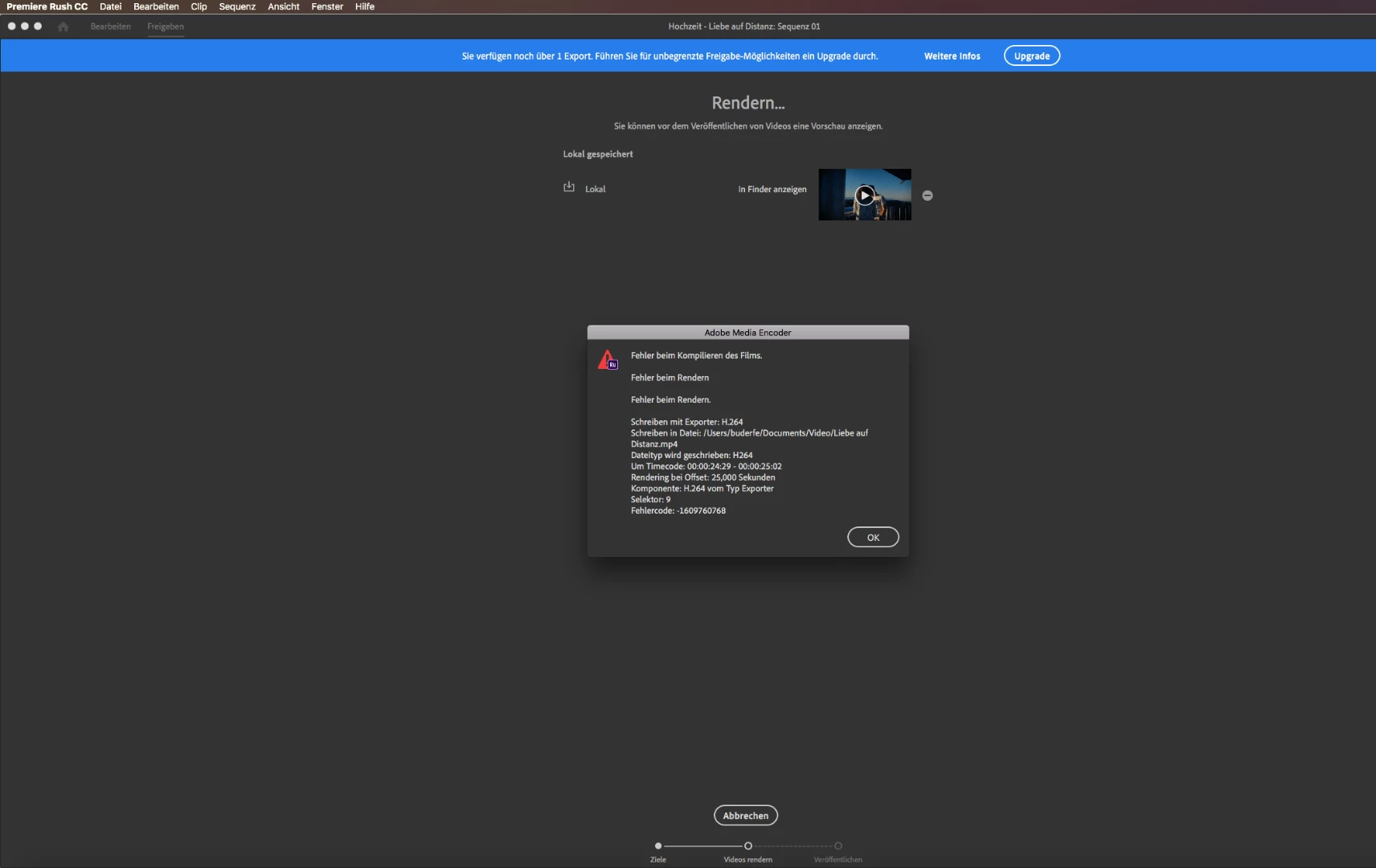 Unfortunately the export fails because an error (Error Code: -1609760768) during the rendering process occurs