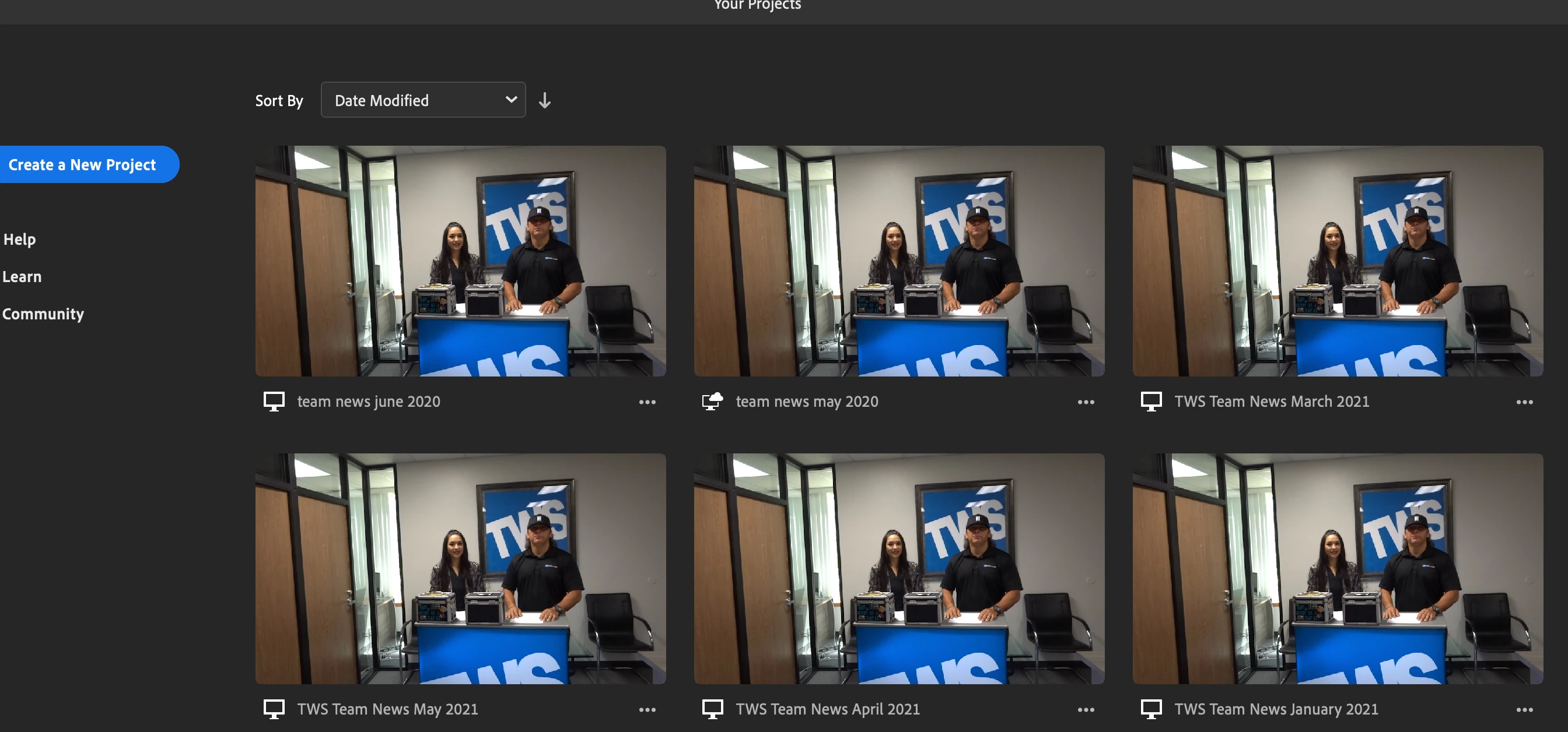 I duplicate projects as I often use the same elements in the same order, but I will import all-new video files and delete the video files from the previous project. However, all of these duplicated projects continue to have the same project thumbnail - the thumbnail that shows when you open Rush to select a project. I am not talking about rendering video and the generated preview thumbnail (this works as it should), but the working project file's thumbnail under "your projects".