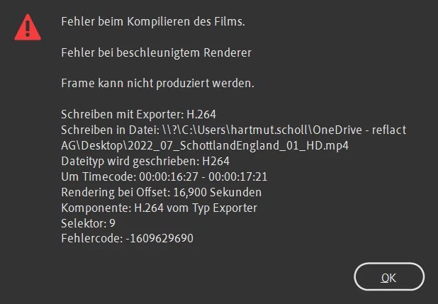 I assembled a video during the last days and realize today that the rendering / export does not work.